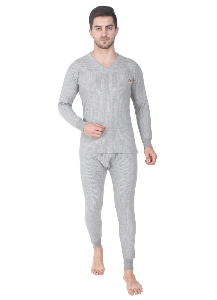 Alfa Men’s Quilted Thermal V Neck Set [Upper+Lower]